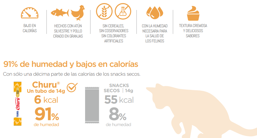Es un producto libre de grano, está hecho de proteína animal, que justamente es el principal nutriente que necesitan los gatos. Es un producto que no tiene preservantes ni colorantes artificiales, convirtiéndolo en un producto natural y sano.